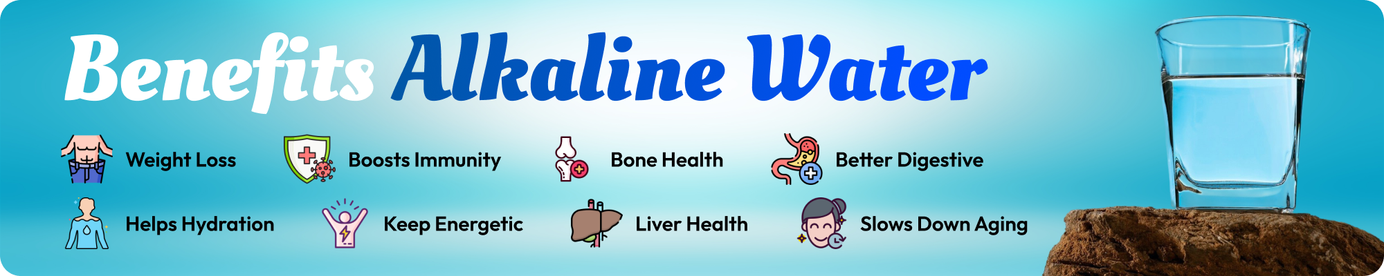 - Slows Down Aging Packed with antioxidants, alkaline water helps combat free radicals, reducing oxidative stress on cells. This can promote healthier skin, better hydration, and a youthful glow.
