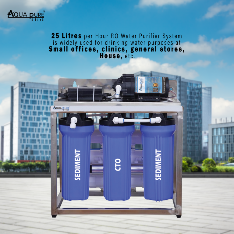 AQUA PURE Elite 25 LPH Commercial RO Plant | Reverse Osmosis Technology | 90–95% TDS Reduction | Dual 100 GPD Membranes | Fully Automatic | SS Frame | Wall-Mount RO System