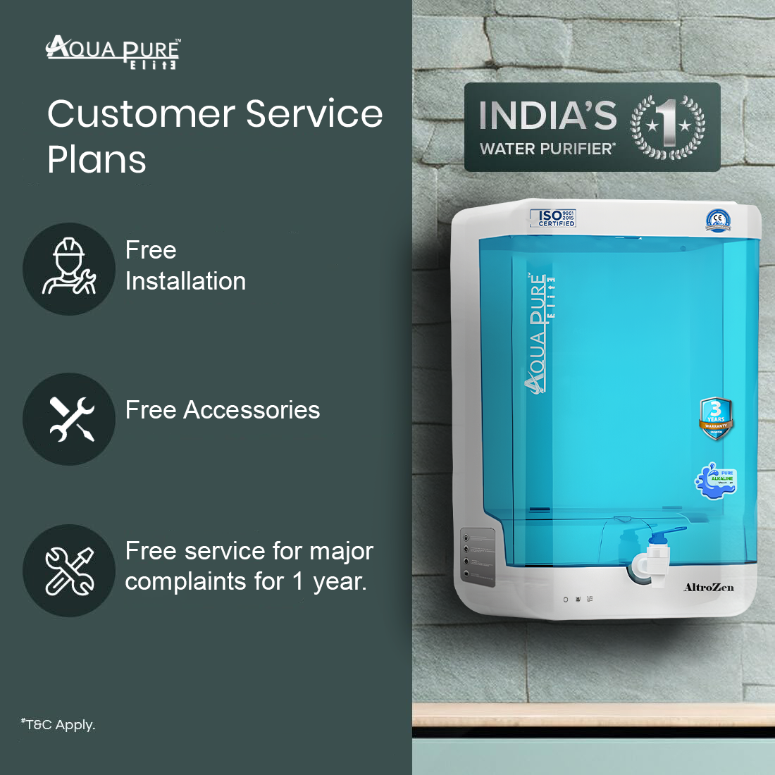 Aqua Pure Elite ALTRO ZEN RO Water Purifier | RO + UF + Antioxidants Alkaline Technology | 13L Storage | Smart LED Indicators | Advanced Home Water Purification