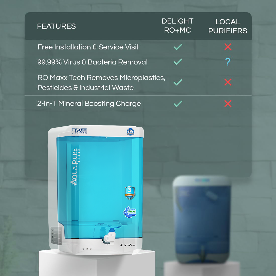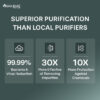 • Superior 6-Stage Purification: Offers 99.9999% bacteria reduction, 99.99% virus reduction, 30x better dust and dirt removal than local purifiers, and 10x more chemical protection through Sedi Shield, Particulate Filter, and RO Maxx purification stages